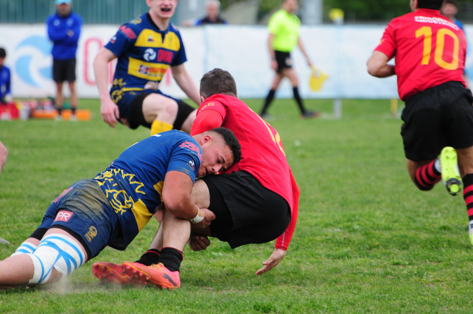 Fin dalle prime fasi si capisce che non sarà una gara semplice. Romagna imposta un confronto diretto, fatto di impatti duri e ritmo alto, obbligando Villorba a rispondere sullo stesso piano. Il primo tempo scorre in equilibrio, con le due squadre capaci di colpire e replicare senza che nessuna riesca a prendere il controllo definitivo.